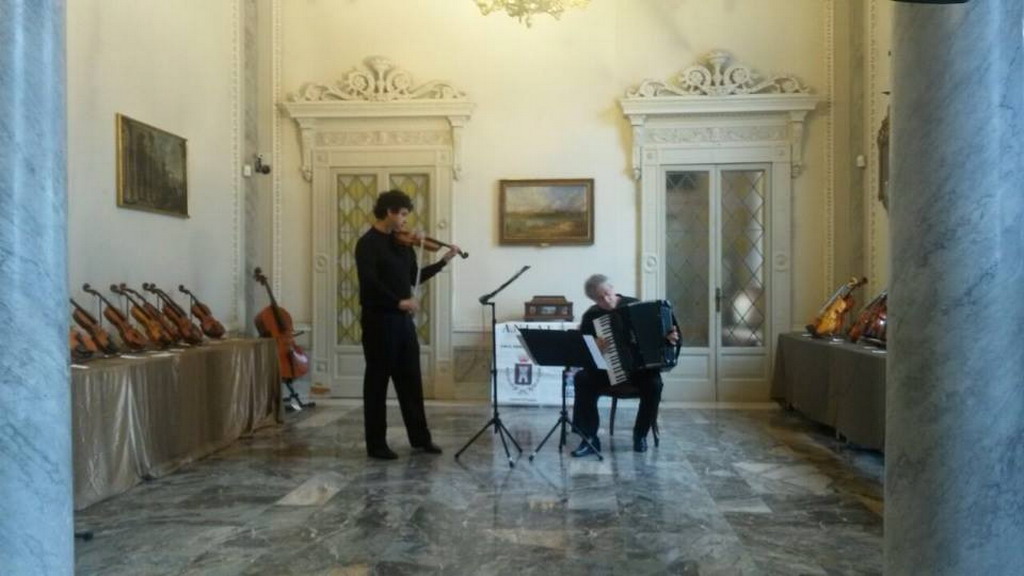 Ieri, all'interno dell'importante rassegna dell'associazione Nazionale Liuteria Artistica Italiana presso Il Palazzo Comunale di Cremona, il duo imperiese formato da Giovanni Sardo al Violino e da Sergio Scappini alla Fisarmonica ha eseguito il programma col quale festeggia i 15 anni di carriera insieme.