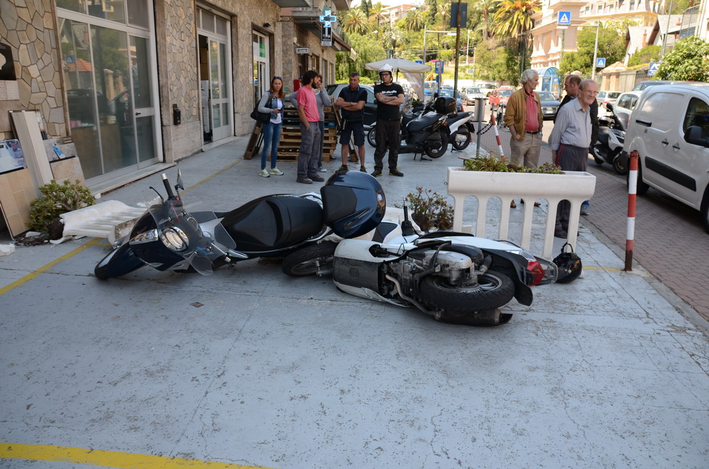 Sanremo: sfiora un'auto in fase di sorpasso e finisce contro uno scooter parcheggiato, 20enne leggermente ferito
