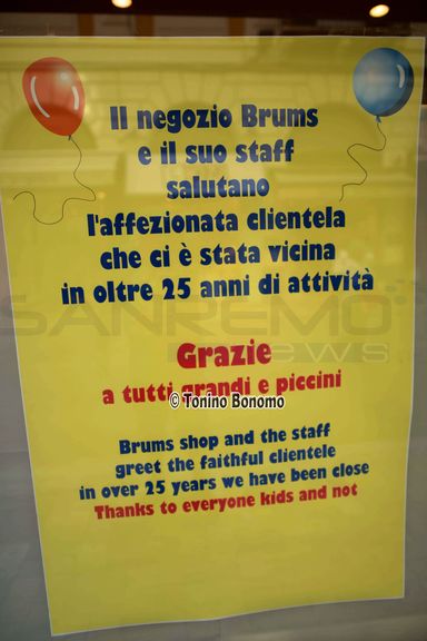 Un altro negozio storico sanremese chiude i battenti, questa volta è il caso di 'Brums' specializzato in abbigliamento per bambini, a chiudere la propria attività dopo 25 anni.