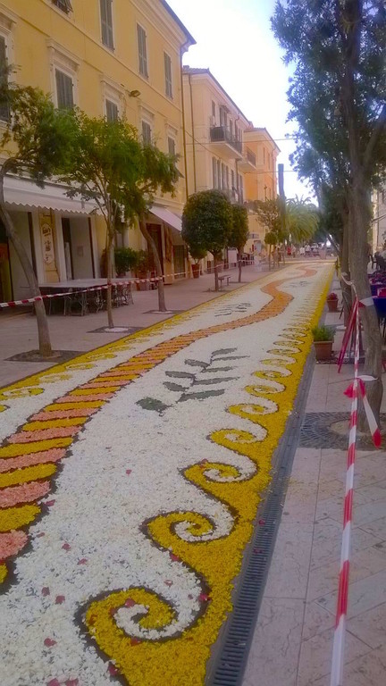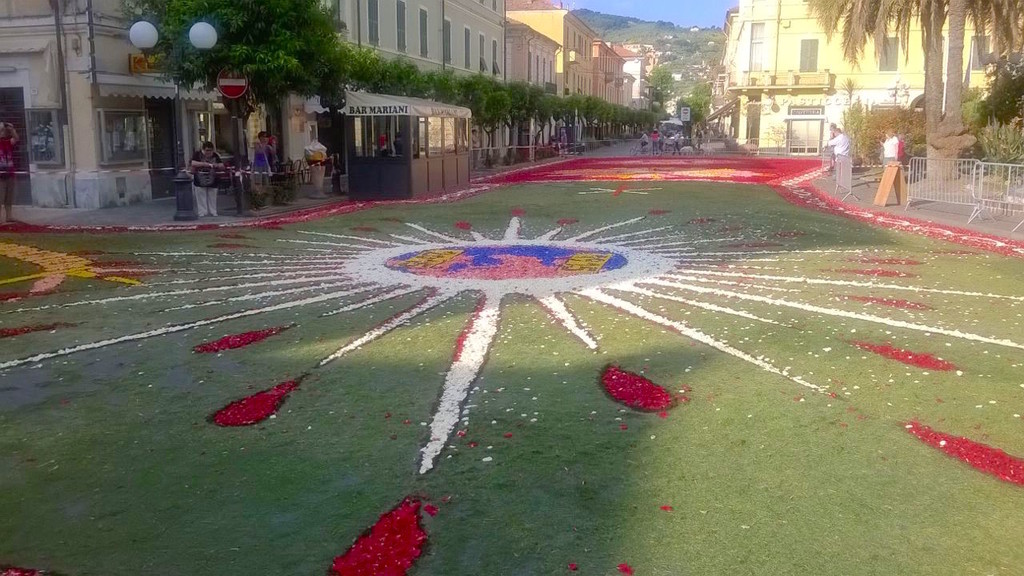 Oggi appuntamento a Diano Marina per la tradizionale Infiorata del Corpus Domini. I disegni e la direzione artistica sono a cura del Geometra Agostino Ardissone che, da 3 anni a questa parte dopo aver collaborato a lungo con il compianto M° Scati, svela al pubblico la propria vena artistica.