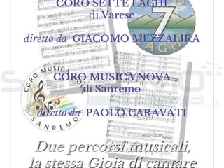 Il coro Sette Laghi di Varese sarà ospite a Sanremo, sabato 13 giugno ore 17,30 nella Chiesa di S.Stefano in Piazza Cassini, per un concerto con il coro Musica Nova: Due percorsi musicali, la stessa gioia di cantare.