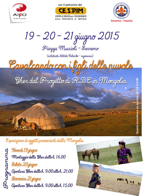 Venerdì, sabato e domenica 19, 20 e 21 giugno, in Piazza Muccioli a Sanremo, sarà installata una gher proveniente dal progetto di Riabilitazione su Base Comunitaria (RBC) che l'Aifo sostiene da 23 anni in Mongolia.