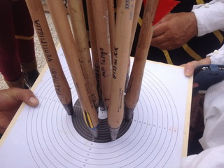 Continuava Gianni con un 25 di gran rispetto visto che nei tiri di prova il dardo non andava bene. I 12 balestrieri iniziavano a sperare sopratutto quando Pietro De Certo confermava la sua dote da cecchino centrando il bersaglio tra le altre nove verette già piantate portando un altro 30 a casa. Chiudevano la tornata Angelo Nicomedi e il maestro d'armi Domenico Miceli. Peccato per quelle 3 frecce ai bordi dei punti che contano.