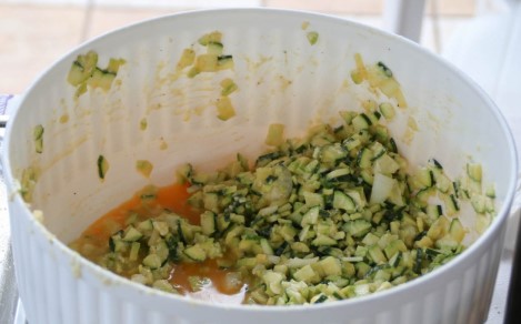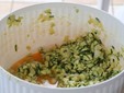 Per ill ripieno: Preparate il ripieno, tagliando a dadini le zucchine e amalgamando bene gli altri ingredienti (cipolla e patate vanno tritati finemente) con l’impiego dell’olio.