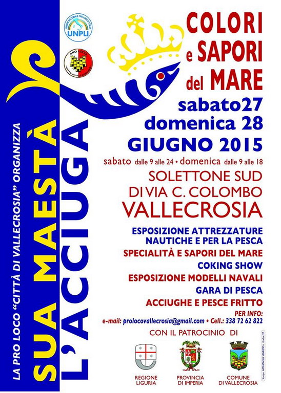 Nel prossimo weekend la ProLoco di Vallecrosia incoronerà il pesce povero Regina del Mar Ligure. Sabato e domenica prima edizione di “Sua Maestà l’Acciuga - Colori e sapori del mare”, intensamente voluto dalla ProLoco vallecrosina per riscoprire e rivalutare le tradizioni del mare, della piccola pesca e della buona cucina ligure. Un evento che si aggiunge al Salone agroalimentare di settembre, manifestazione ormai consolidata e dedicata alle prelibatezze della terra.