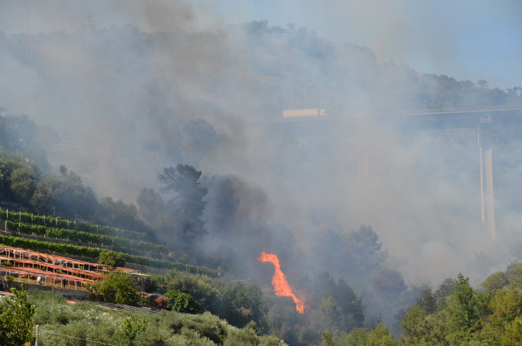 Un incendio ha distrutto circa 6 ettari di macchia mediterranea, tra uliveti, frutteti, serre e campagne di vario genere, in località Abaia, sul territorio comunale di Terzorio, vicino a Santo Stefano al Mare.