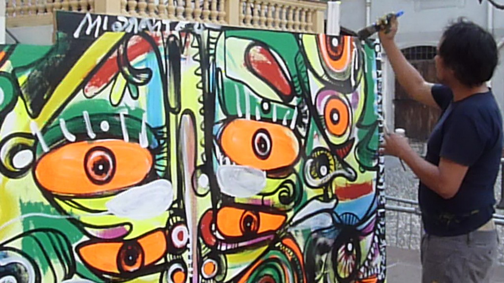 Continua la settimana messicana in provincia di Imperia a cura dell'associazione ‘MaNifestA’. Dopo l'incontro aperitivo-conferenza all'Arci Camalli di Imperia di lunedì scorso, ieri a Sanremo Edison Blas ha dipinto un pannello sul palco di Piazza San Siro a Sanremo sul tema della Maschera, coinvolgendo il pubblico a lasciare la traccia di un volto su un grande striscia di carta.