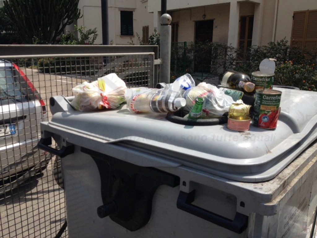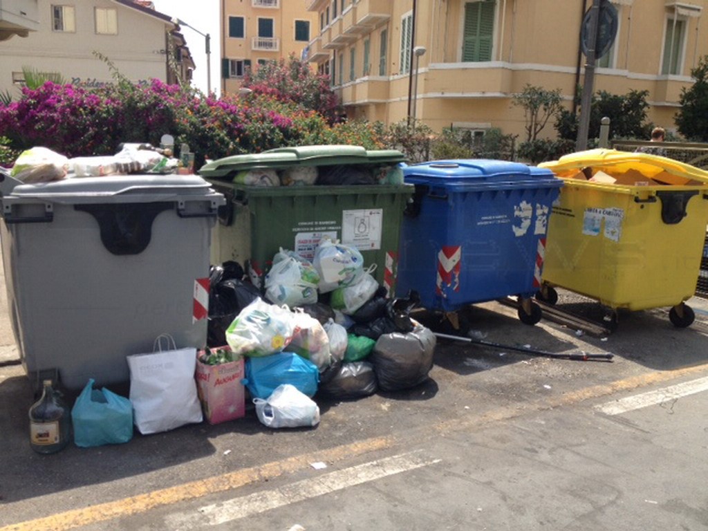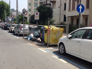 Sanremo: cassonetti trabordanti e miasmi insopportabili in pieno centro a due passi dallo Zampillo