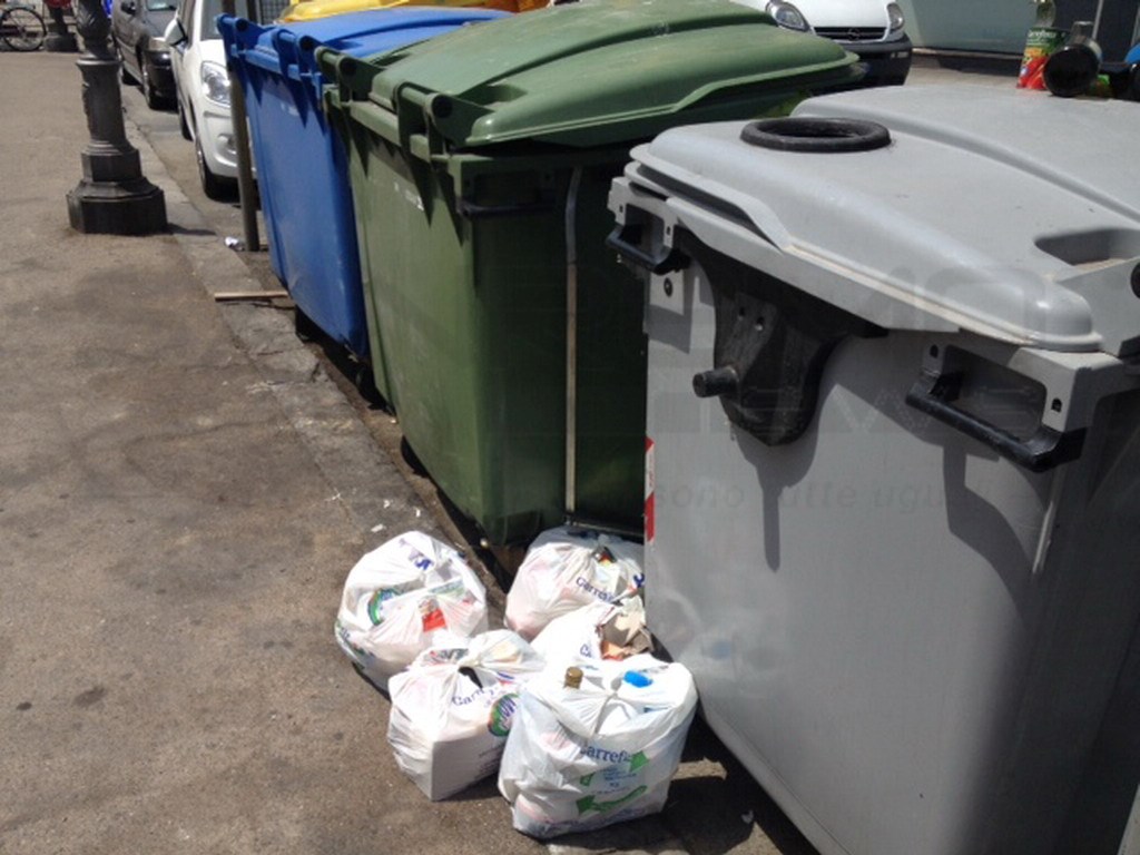 Le foto non rendono merito a quanto potrebbe aver fatto l’olfatto o, per meglio dire i miasmi, che questa mattina intorno alle 13 arrivavano dai cassonetti ritratti nella gallery, in via Nino Bixio a pochi passi dalla fontana dello Zampillo.