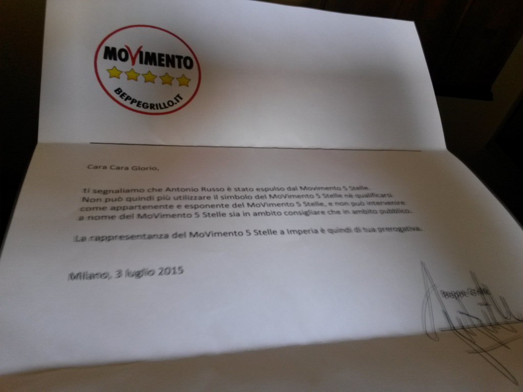 A parlare è il Consigliere Comunale del MoVimento 5 Stelle Cara Glorio, che prosegue: "Nei giorni scorsi - continua - mi è arrivata una lettera dalla casella postale di Beppe Grillo con tanto di firma nella quale mi viene comunicato che Russo è stato espulso e che io sono indicata come unica portavoce del MoVimento. E' stato insinuato che la lettera fosse un falso, ma io non mi permetterei mai di falsificare una firma, tantomeno quella di Beppe Grillo. Inizialmente avevo in mano la mail che ho stampato, ma nei giorni seguenti mi è arrivata la raccomandata. Io fossi stata espulsa, come Russo, mi sarei dimessa".