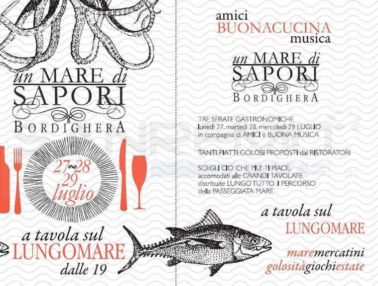 Quasi al via la seconda edizione di 'Bordighera...un mare di sapori' che si svolgerà sul Lungomare Argentina, nel tratto di passeggiata che si estende da Sant’Ampelio e il sottopasso della Stazione nei giorni di lunedì 27, martedì 28 emercoledì 29 luglio.
