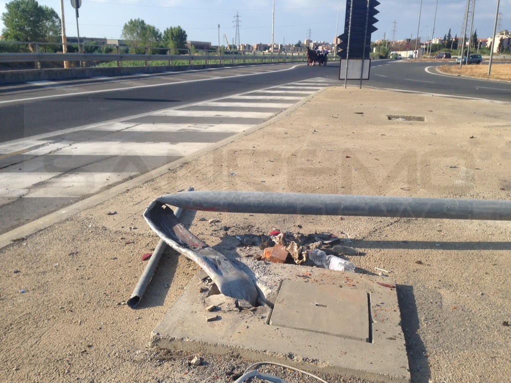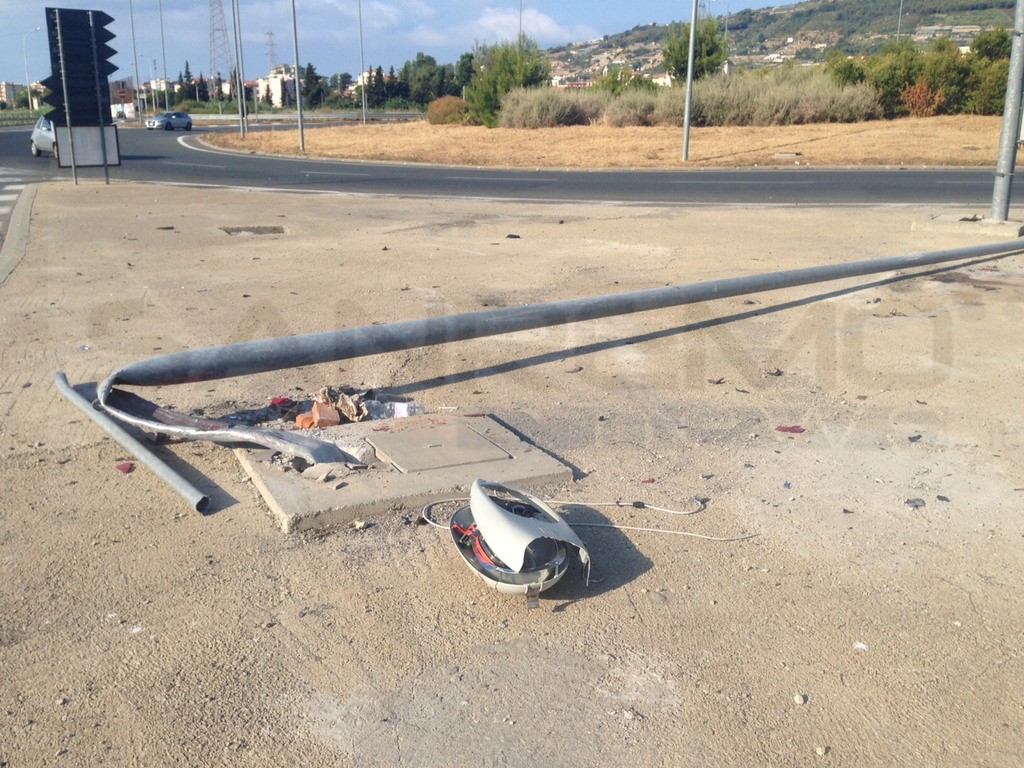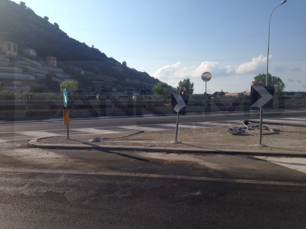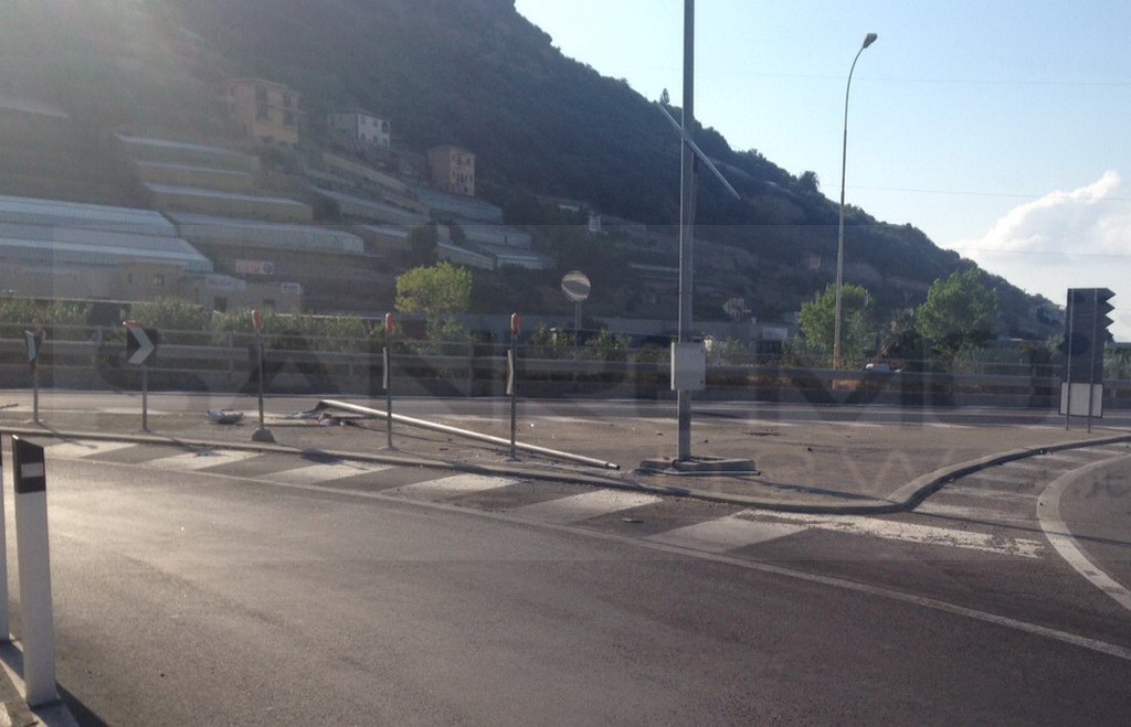 Taggia: sempre più preoccupanti i 'sabato sera', stanotte auto esce di strada alla rotonda e distrugge un palo della luce
