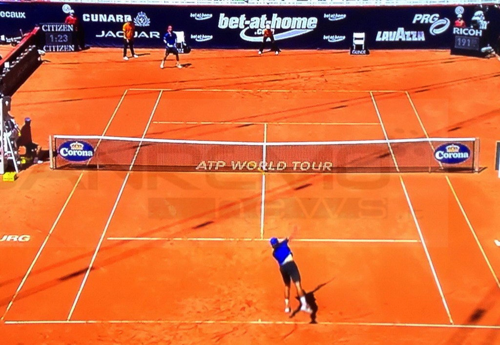 Lite tra Fabio Fognini e Rafa Nadal durante la finale del torneo di Amburgo, vinta dallo spagnolo con un doppio 7-5.