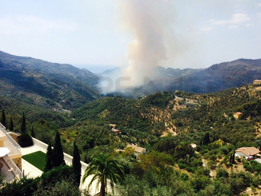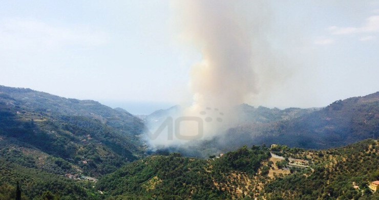 Perinaldo: peggiora l'incendio in località Massabò, 5 mezzi aerei sul posto ed alcune abitazioni evacuate