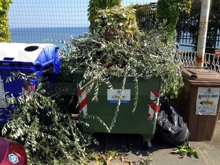 Ospedaletti: pota gli alberi del giardino e per non fare 60 metri in più, getta tutto nei cassonetti