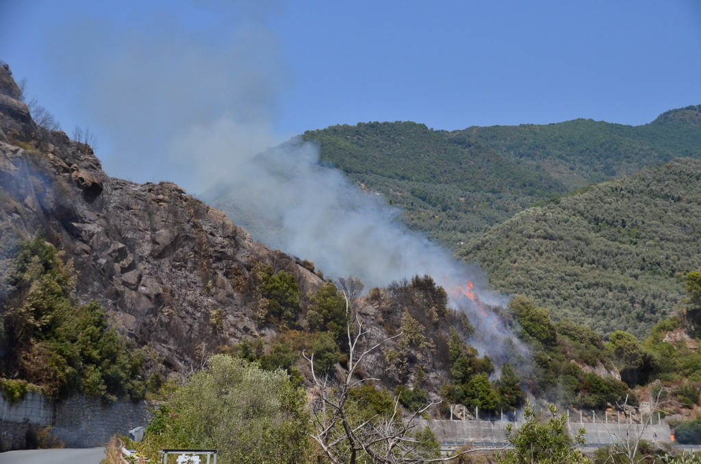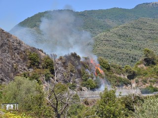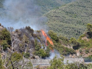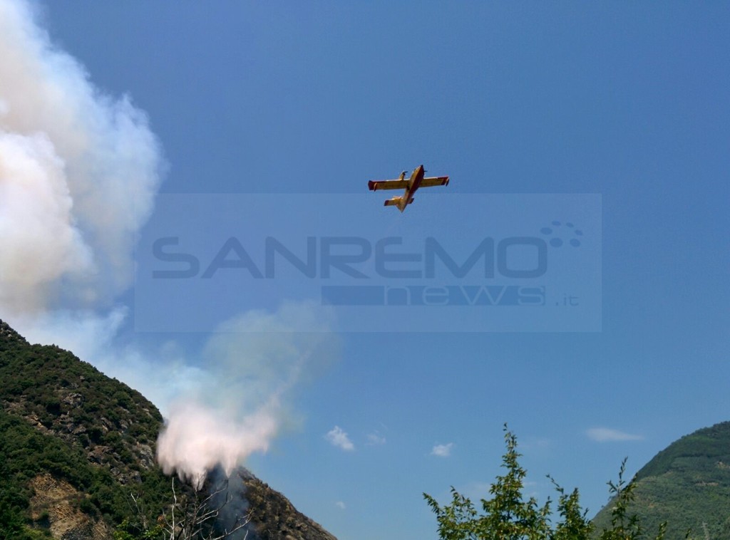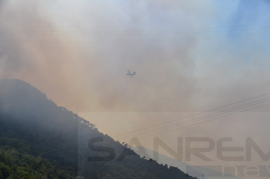 Sanremo e Badalucco interessate da due grossi incendi, a Borello minacciate le abitazioni e in Valle Argentina bruciato un costone in zona Regianco
