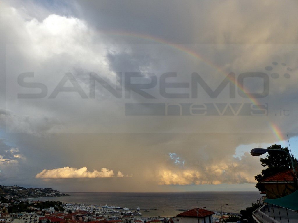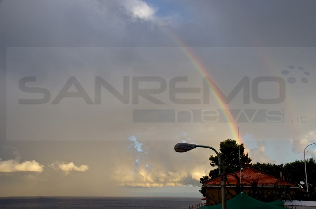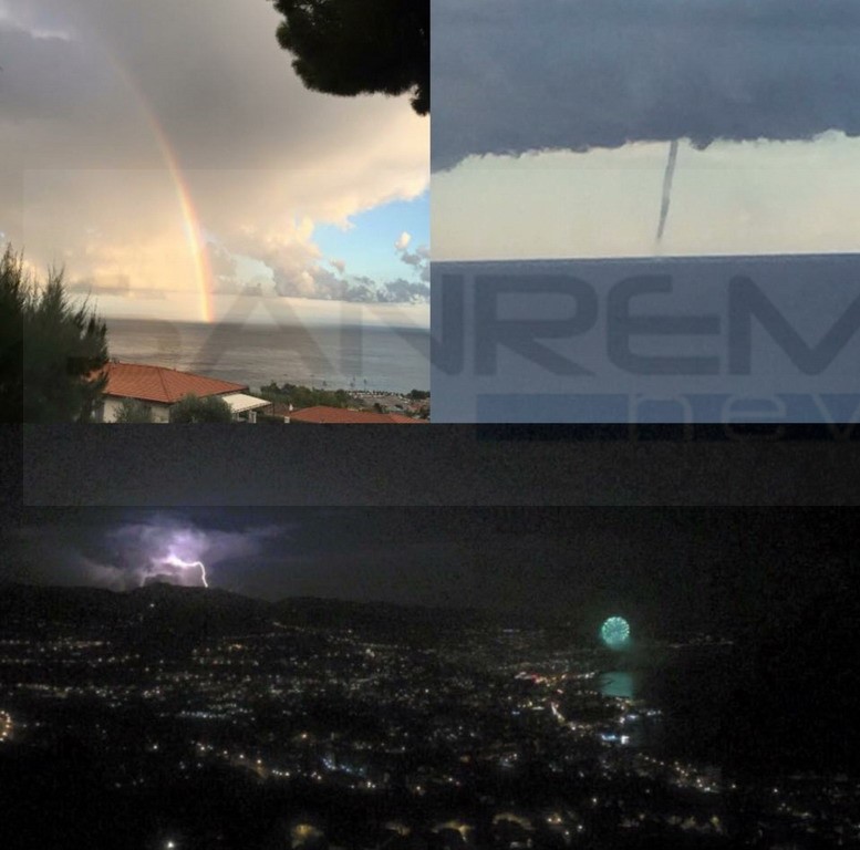 Tromba marina questa mattina di fronte alla costa della nostra provincia, ieri uno splendido arcobaleno