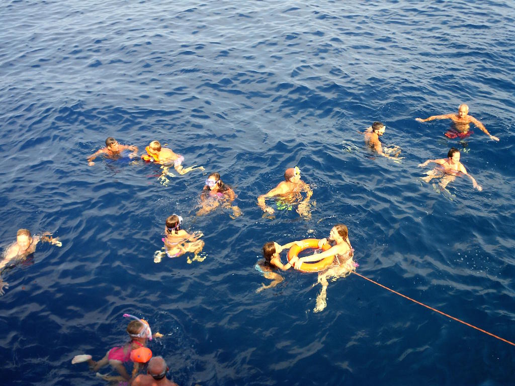 Se avete organizzato il vostro viaggio nelle ore pomeridiane, per circa tre quarti d'ora/un'ora è prevista anche la sosta bagno a ridosso dell'isola. Per chi non sapesse nuotare è prevista la presenza di salvagenti saldamente legati all'imbarcazione ma anche giubbotti salvataggio. È possibile tuffarsi dalla barca e dall'apposito trampolino ma anche scendere dalla scaletta, dalla quale poi si risale per tornare sull'imbarcazione.