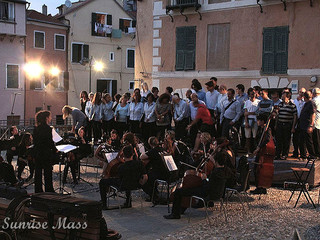 Un successo il concerto "Sunrise Mass" organizzato lunedì 10 agosto, nella rinnovata piazza Parasio di Imperia. L'opera composta dal giovane maestro norvegese Ola Gjeilo, è una messa sinfonica per coro e archi, dove ha avuto come protagonisti della serata il coro Troubar Clair e la Giovane Orchestra Note Libere, diretti dalla professoressa Cristina Orvieto. La serata è stata presentata da Don Antonello Dani, ed è stata trasmessa in diretta streaming, in tutto il mondo. Numerosi sono stati i paesi che si sono connessi, dagli Stati Uniti, Norvegia, Canada, Germania, Equador, Spagna, Francia, Monaco, Ungheria, Portogallo, Inghilterra, China, Estonia e naturalmente l'Italia.
