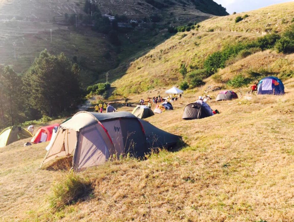"Ieri sera, mentre lo staff ha preparato la cena per i camminatori e i loro familiari, questi hanno raggiunto il Colle d'Oggia per la Cena e a tavola eravamo ben 67. Durante tuttto il percorso abbiamo fatto e continueremo a fare attenzione alla spazzatura differenziata. Il tutto è compostabile, nonostante la difficoltà di aver dovuto montare un campo per 67 persone, portandoci tutto da casa" ci racconta Alessandro Bellotti.