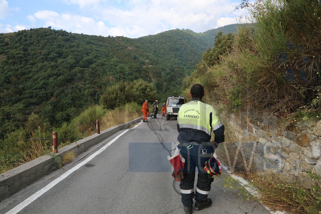Sanremo: in fase di bonifica l'incendio in strada Monte Ortigara a Coldirodi, distrutti sei ettari di bosco