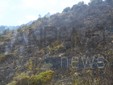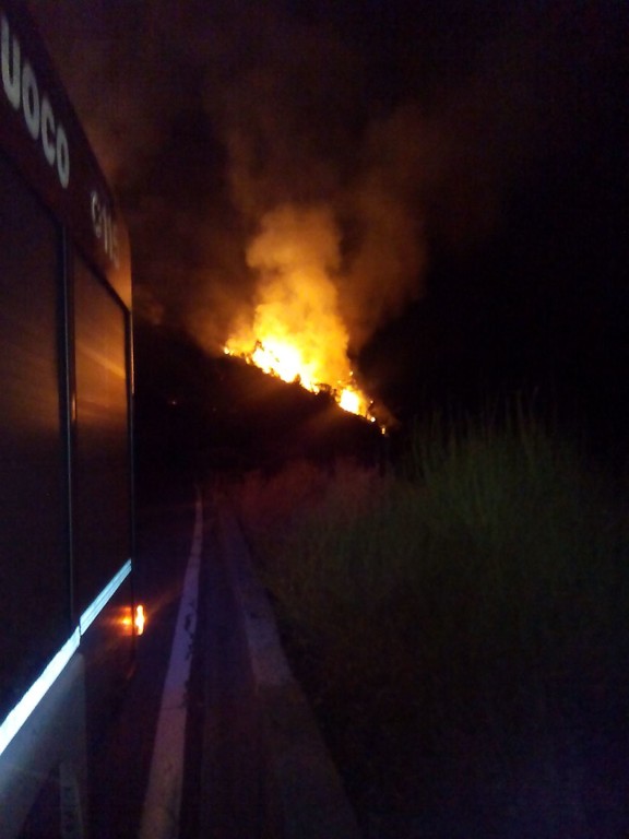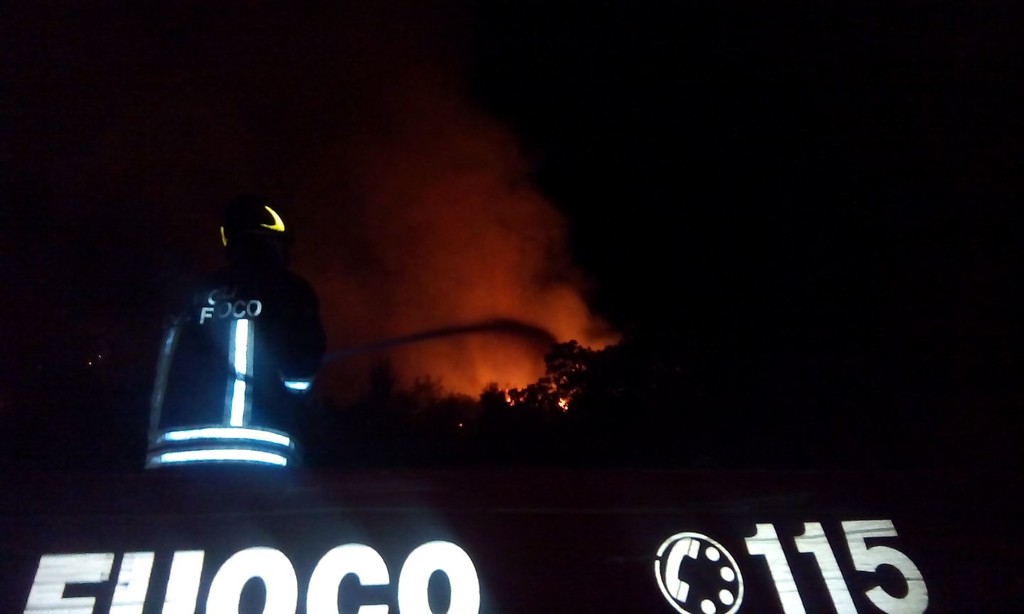 E' in fase di bonifica post - incendio il rogo che in nottata ha distrutto sei ettari di bosco,