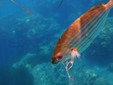 “Sotto, nella prima foto non si capisce perchè un bagnante debba farsene una retina piena. Quindi un ‘subacqueo’ attrezzatissimo e soprattutto armato va a caccia a pochi metri dalla battigia, dove si immergono anche bambini, donne e bagnanti. Infine una sarpa inerme è rimasta impigliata in una serie di ami (palamito) che galleggiavano davanti alle scogliere di Cervo. La povera bestia avrà sofferto e nonostante la mia slamatura, non so se sarà sopravvissuta... ma queste trappole lasciate in mare davanti alle nostre spiagge sono così innocue anche per i turisti che si fanno un bagno?”