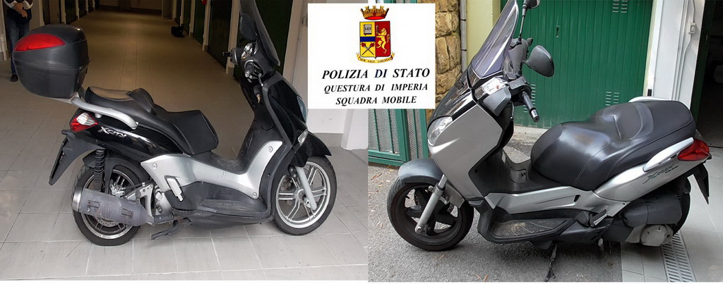I motocicli, un Yamaha X City e un Yamaha X Max, sono stati rubati a Sanremo, uno nel 2014 e uno pochi mesi fa, e non si esclude possano essere stati utilizzati da malviventi nel corso di recenti episodi delittuosi.