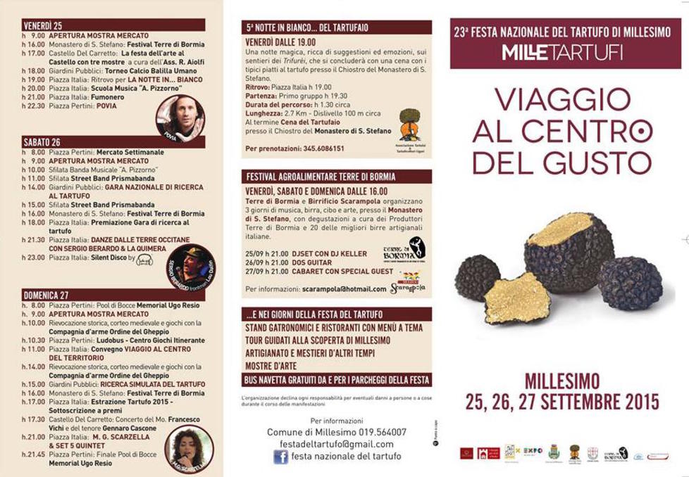 Tutto pronto per la XXIII Festa Nazionale del Tartufo di Millesimo che si terrà da venerdì 25 a domenica 27 settembre. Il tartufo, nelle sue due qualità bianco e nero, sarà al centro della rassegna, allestita nella prestigiosa cornice di uno dei “Borghi più belli d’Italia”.