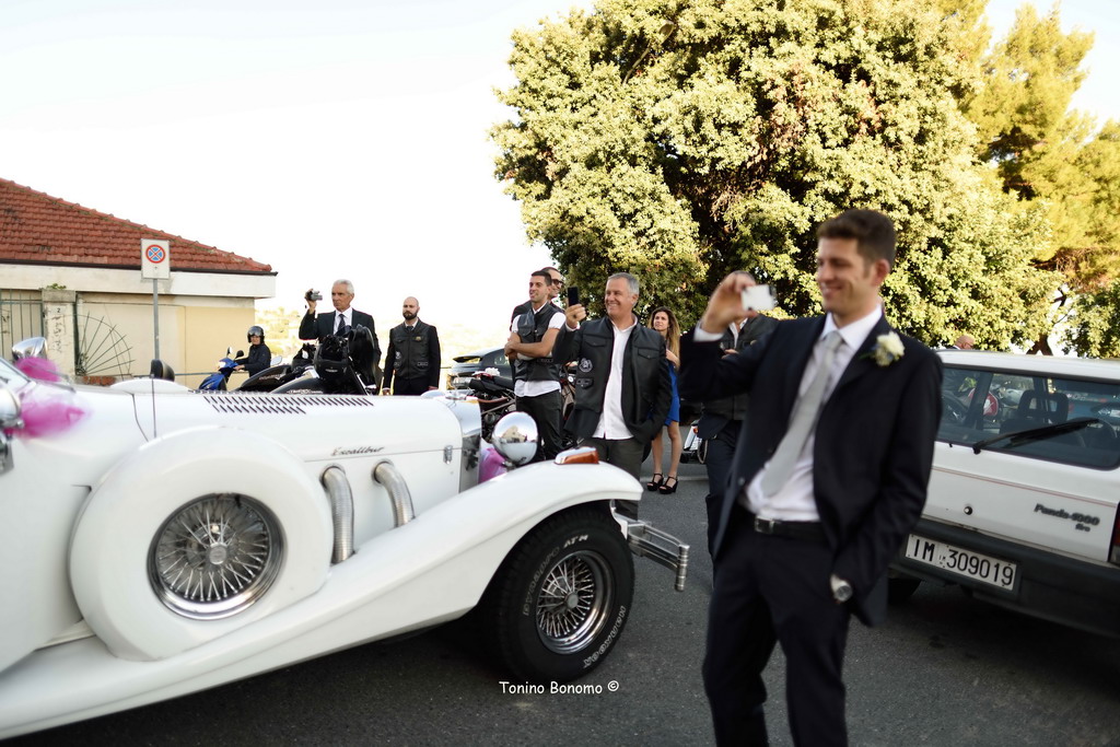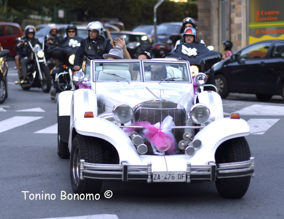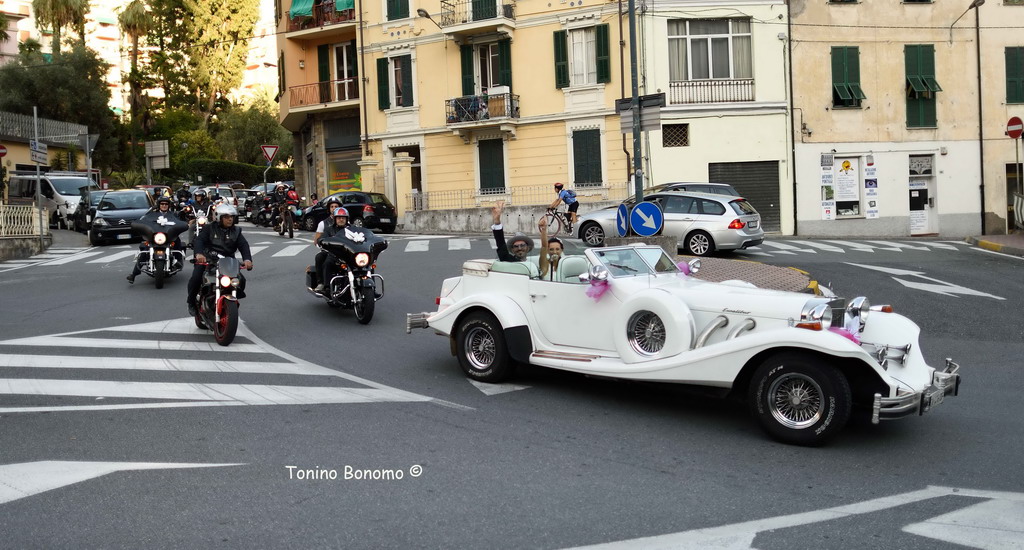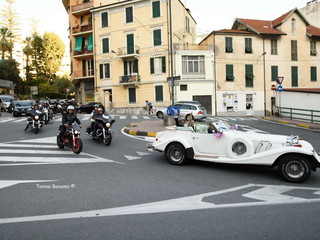 Matrimonio molto particolare, quello di oggi a Sanremo, seguito da un corteo di motociclisti.