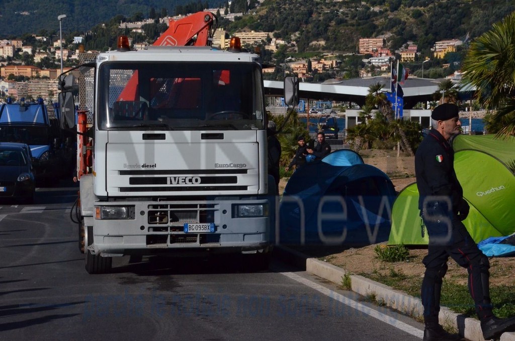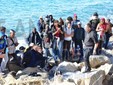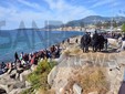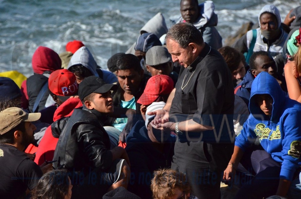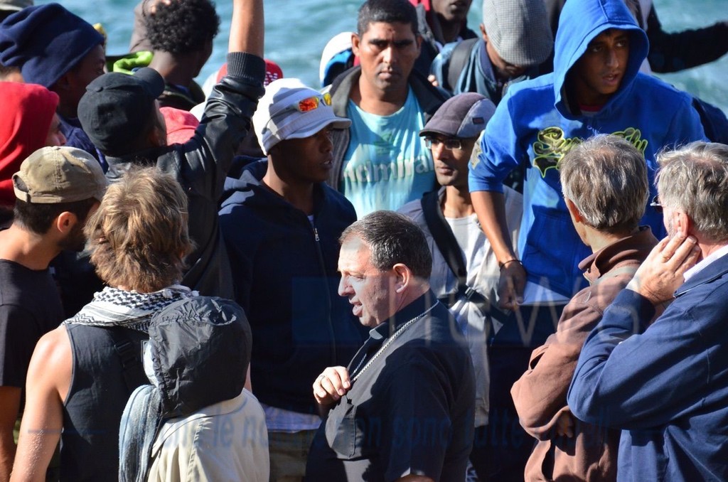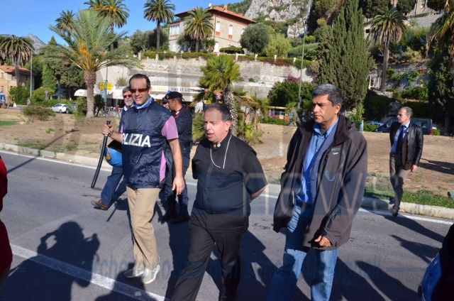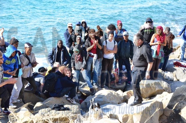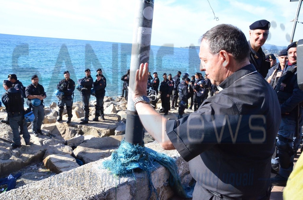 Ventimiglia: il Vescovo Antonio Suetta sale sugli scogli per spingere i No Borders a finire la protesta