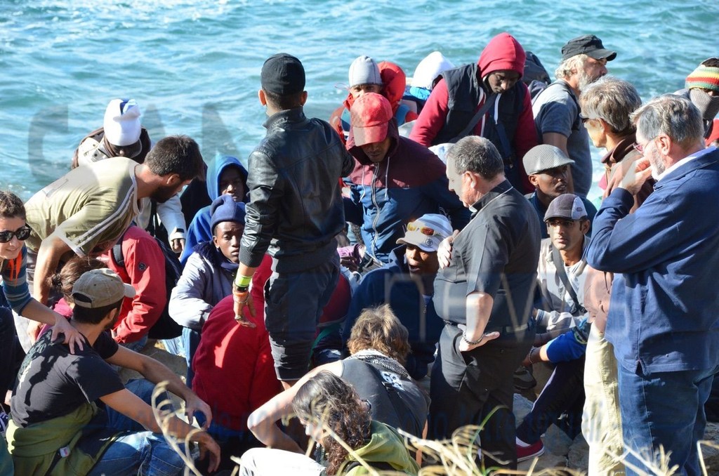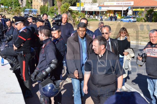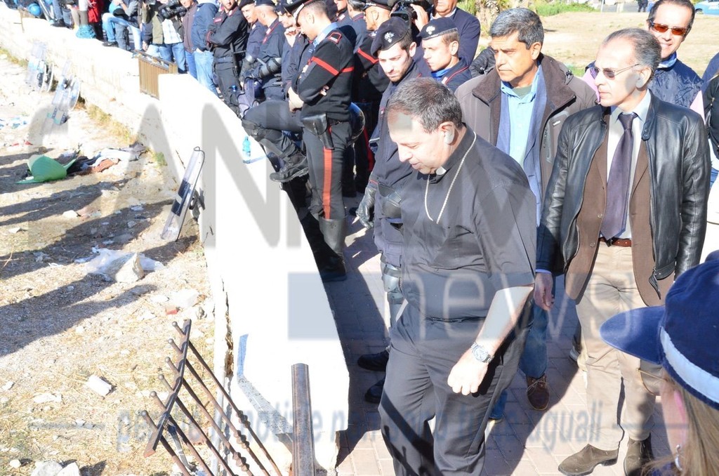 Il Vescovo è salito sugli scogli per parlare con i manifestanti. Ignoti al momento i contenuti della conversazione ma è presumibile che stia operando un'azione di mediazione.