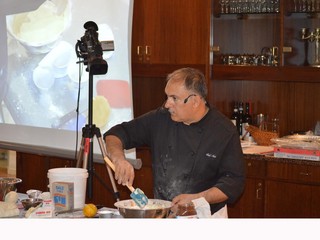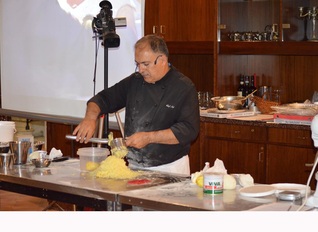 Lo chef, in circa di tre ore di corso, ha insegnato la preparazione di pane, pizza, focaccia, gnocchi, crostata, pan di spagna e souffle al ciocolato. Tutti rigorosamente senza la presenza di glutine