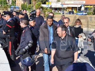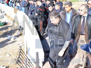 Il Vescovo è salito sugli scogli per parlare con i manifestanti. Ignoti al momento i contenuti della conversazione ma è presumibile che stia operando un'azione di mediazione.