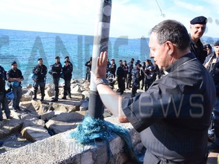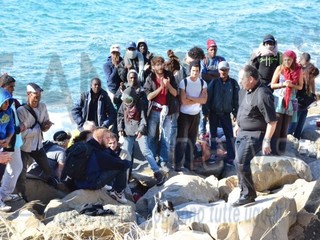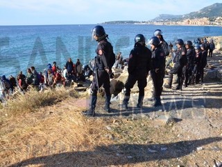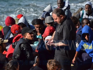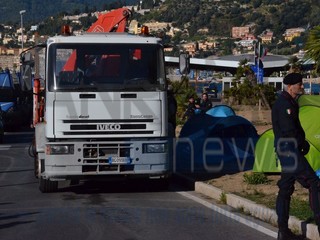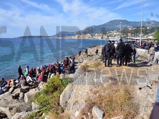 Ventimiglia: il Vescovo Antonio Suetta sale sugli scogli per spingere i No Borders a finire la protesta