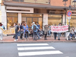 Ventimiglia: i 'No Borders' accolti da striscioni e slogan delle associazioni ieri sera di fronte al Commissariato