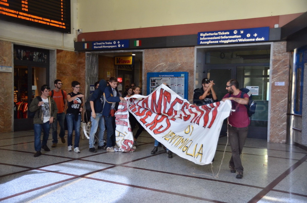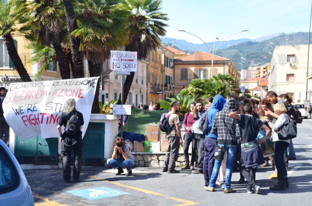 La manifestazione, decisa l'altro ieri durante un'assemblea al mercato coperto della città di confine, non è stata autorizzata. Oltre ai 'No Border' presenti da tempo al confine sono presenti altri attivisti di diverse associazioni dall'Italia e dalla Francia.