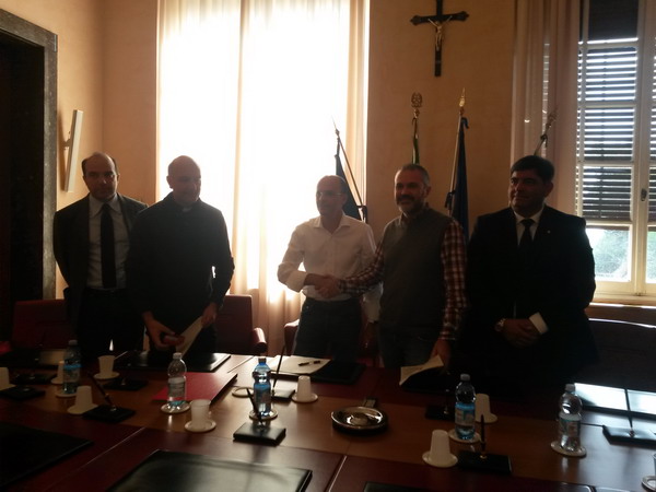 Alla firma, oltre ai due rappresentanti delle cooperative, erano presenti il Sindaco Carlo Capacci e gli Assessori Fabrizio Risso e Giuseppe De Bonis.