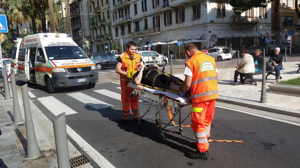 Sanremo: scontro auto-moto all'incrocio via Bixio-corso Mombello, centauro di Ventimiglia in ospedale