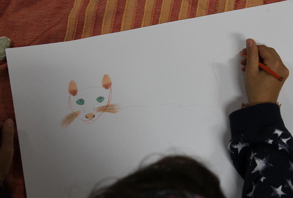 I bambini e i ragazzi si sono dedicati al disegno e alla tecnica appresa, senza trascurare di giocare con il protagonista della serata: il gatto!