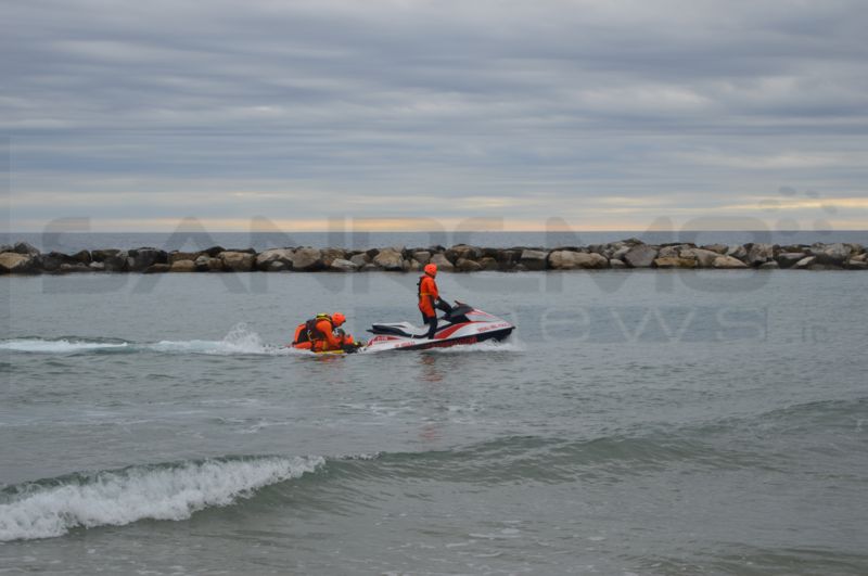 Arma di Taggia: esercitazione dei Vigili del Fuoco per affinare le tecniche di salvataggio in mare con moto d'acqua e gommone