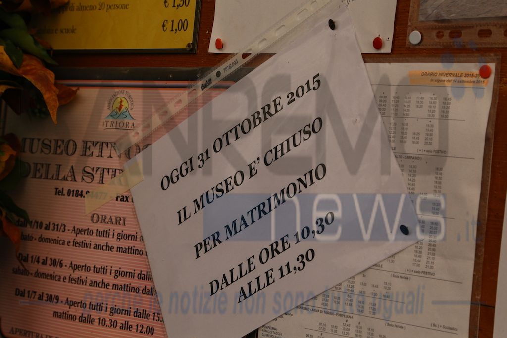 Oggi non si è ovviamente parlato di questioni economiche a Triora ma di un momento molto più importante nella vita dell'imprenditore torinese. Massimo riserbo ovviamente fino a questa mattina considerando l’importanza del nome dello sposo ma in vallata la voce è circolata rapidamente. In particolare in molti si sono incuriositi di fronte al cartello che indicava la chiusura straordinaria del museo per un matrimonio, in quella che potremmo definire una giornata clou.