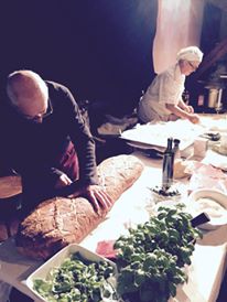 Durante lo showcooking è stata presentata una preparazione semplice, ma simbolica: la pasta al pesto, effettuata da Terry Prada e Gianluigi Moro, titolari del ristorante Busciun di Castel Vittorio. “Per lo show cooking abbiamo utilizzati prodotti locali, come l'olio extravergine di oliva di montagna di Mauro Rebaudo e le marmellate biologiche di Pia Viale di Vallebona. Unica defezione dalla Val Nervia, ma sempre made in Italy, la selezione di vini piemontesi dell'amico Mauro Briganti di Doglianii" ci spiega Terry.