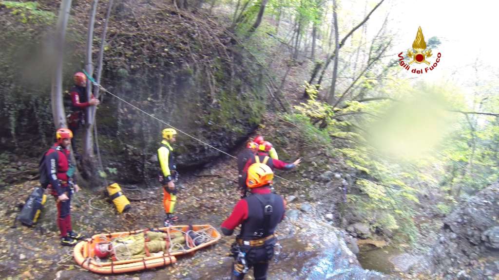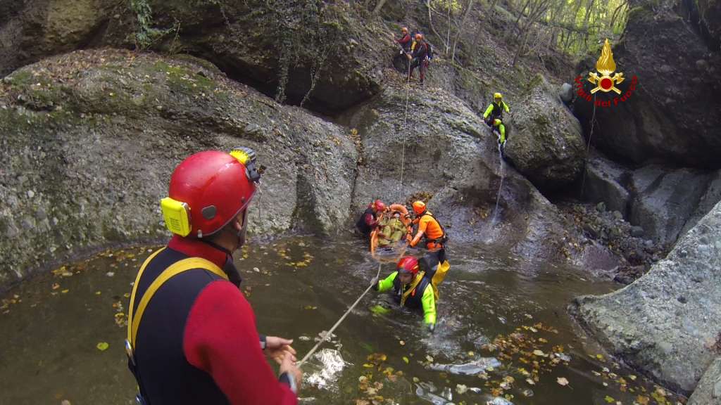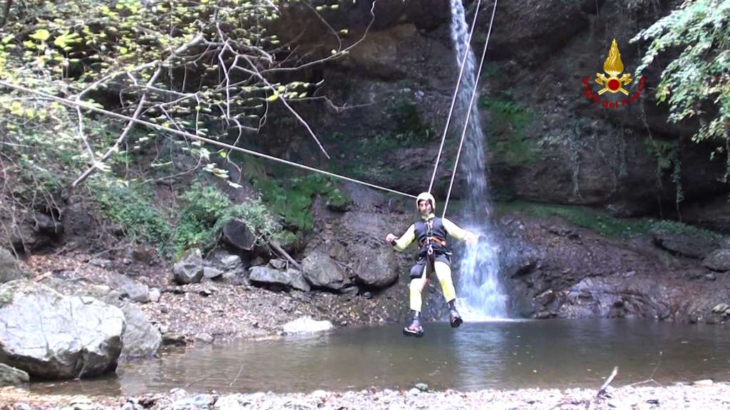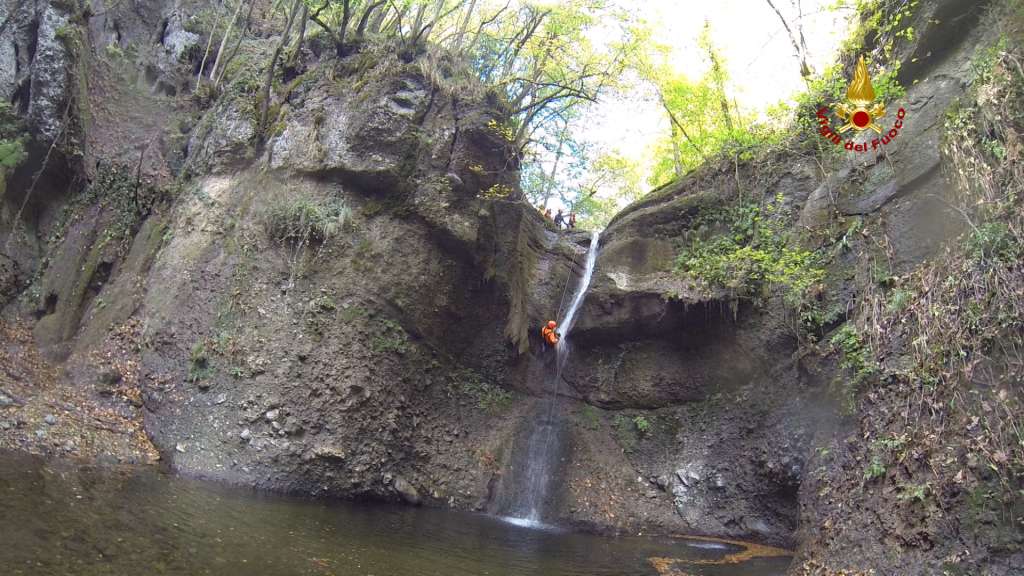 La complessità dell'ambiente, il freddo, la pericolosità di rimanere sotto cascata durante le calate hanno reso questo ‘intervento’ molto impegnativo sia sul piano fisico che psicologico.