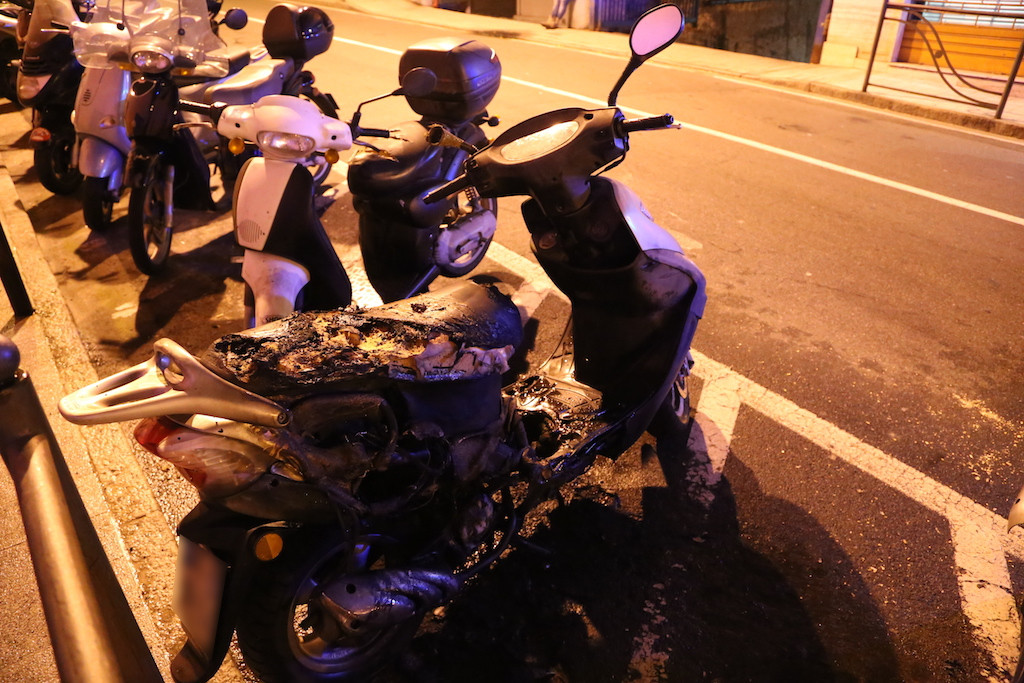 L'immediato intervento dei pompieri ha evitato che l'incendio si propagasse anche a tutti gli altri numerosi mezzi posteggiati a fianco del ciclomotore.