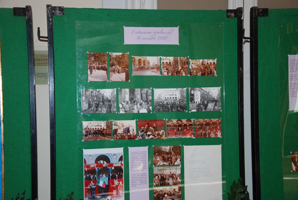 Nell'atrio del Palazzo della Provincia sono stati allestiti i cimeli relativi alla visita di Pertini a Imperia il 16 novembre del 1980.