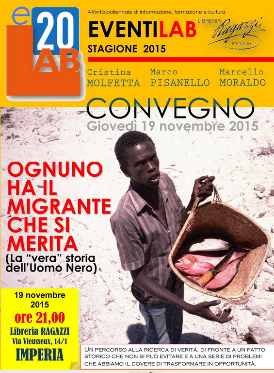 Nella bella cornice della Libreria Ragazzi di Via Vieusseux, si è tenuto ieri il 13° dei venti ‘EventiLab’ organizzati dal Laboratorio per Imperia. Il titolo era ‘Ognuno ha il migrante che si merita’.