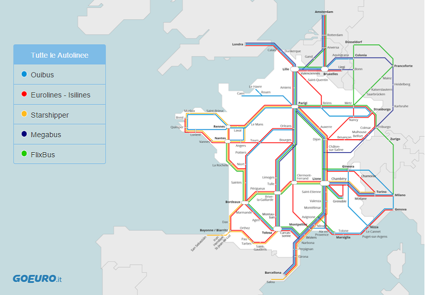 Nell'agosto di quest'anno, anche la Francia ha abbracciato questa politica di liberalizzazioni, che è stata sancita dalla Legge Macron, un provvedimento legislativo destinato a modernizzare l'economia francese e quindi ad attirare investimenti in diversi settori, specialmente in quello dei trasporti. Come si può leggere sulla pagina informativa che il portale di viaggi GoEuro ha dedicato alla rete di autobus francese, gli effetti sono stati più che positivi: ampliamento della rete di collegamenti sul territorio francese, miglioramento degli standard, maggiore competitività e abbassamento dei prezzi sia per le tratte nazionali che per quelle internazionali