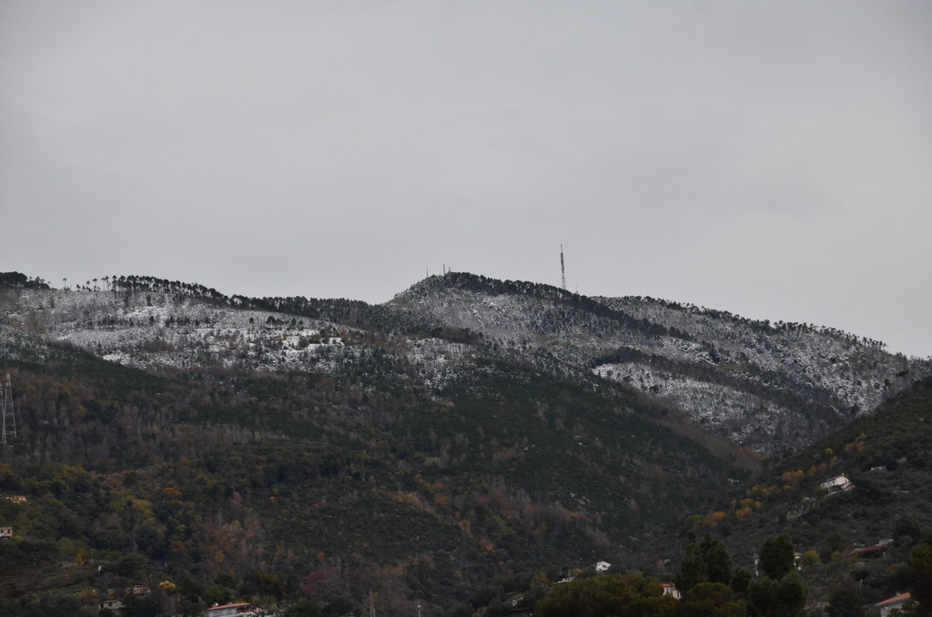 Lo avevamo annunciato ieri nel tardo pomeriggio e, oggi, alle prime luci dell'alba il panorama montano dell'entroterra di Sanremo si è presentato 'imbiancato' da una neve novembrina che da anni non si vedeva.