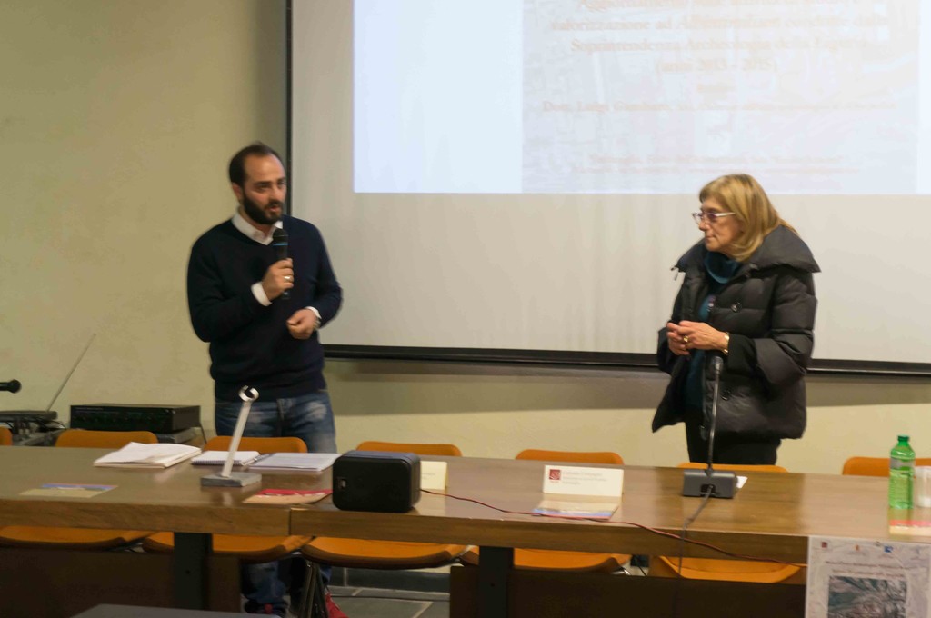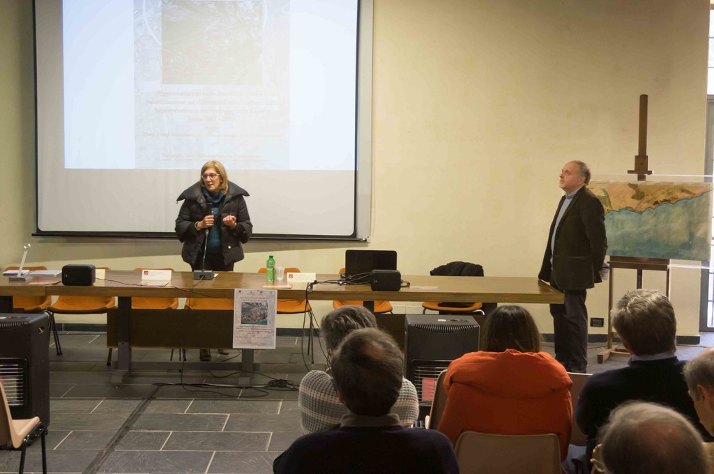 Dopo i saluti dell'Assessore ai Lavori Pubblici del Comune di Ventimiglia, Gabriele Campagna e l'introduzione del Conservatore del Museo, Daniela Gandolfi, Luigi Gambaro ha relazionato il numeroso e attento pubblico su gli interventi condotti dalla Soprintendenza Archeologia della Liguria negli ultimi anni, descrivendo come parallelamente ai lavori di restauro e consolidamento di alcuni monumenti e strutture della città romana, come il teatro e le terme, siano stati condotti delle ricerche di studio e approfondimento della storia del municipium romano grazie all'uso di nuove tecnologie, droni e rilevamento con telelaser.